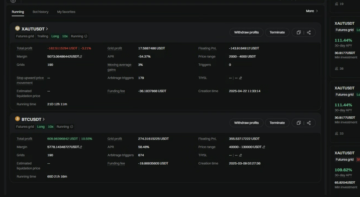 비트코인은 시세가 변동하지 않았지만 10불의 그리드이익이 3일간 생겼다.